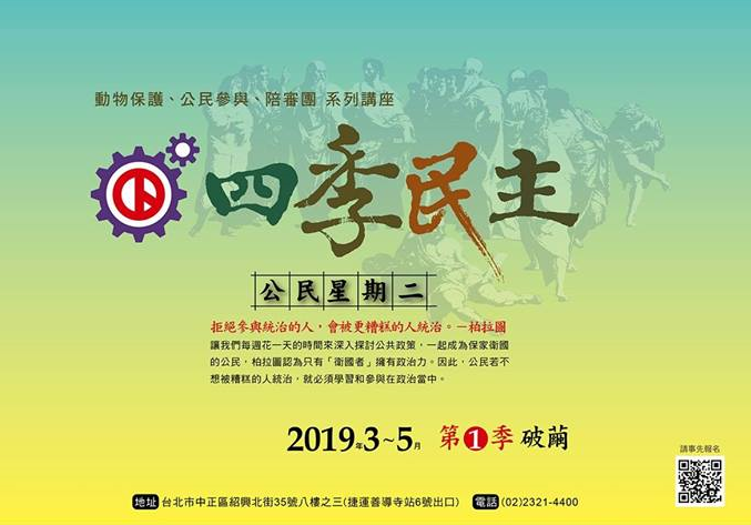 柏拉圖說過:「拒絕參與統治的人,會被更糟糕的人統治。」 公民星期二,讓我們一週花一天的時間關心台灣!